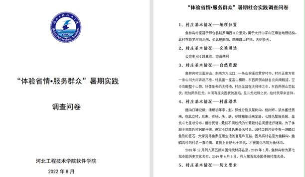 本次暑期社会实践“软件一夏 考古未来”实践团队以“体验省情●服务群众”为主题,立足于对传统古村落文化的弘扬和传承,对河北省内国家级历史古村落进行了深入调研,在数字化时代大潮下,运用互联网思维尝试古村落的保护、利用与发展。在实践中传承耕读古村落文化,赋能乡村振兴,以实际行动迎接党的二十大胜利召开。