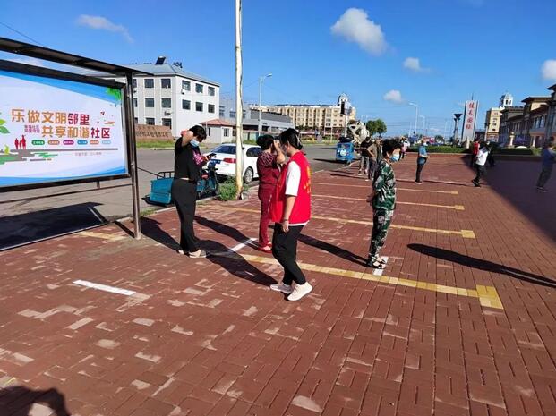 “燕赵逐梦队”暑期社会实践团队成员胡泽宜在黑龙江省佳木斯市郊区毕升街云环街道佳天社区帮助医护人员进行新冠疫苗的接种登记,并在全员核酸检测中,对来往⼈员测量体温;在佳木斯市东风区南岗社区,组织社区朋友们学习防控疫情的知识;在佳木斯市郊区英俊街道三合社区积极引导居民做好“每天体温测量,进出扫描场所码”的活动。