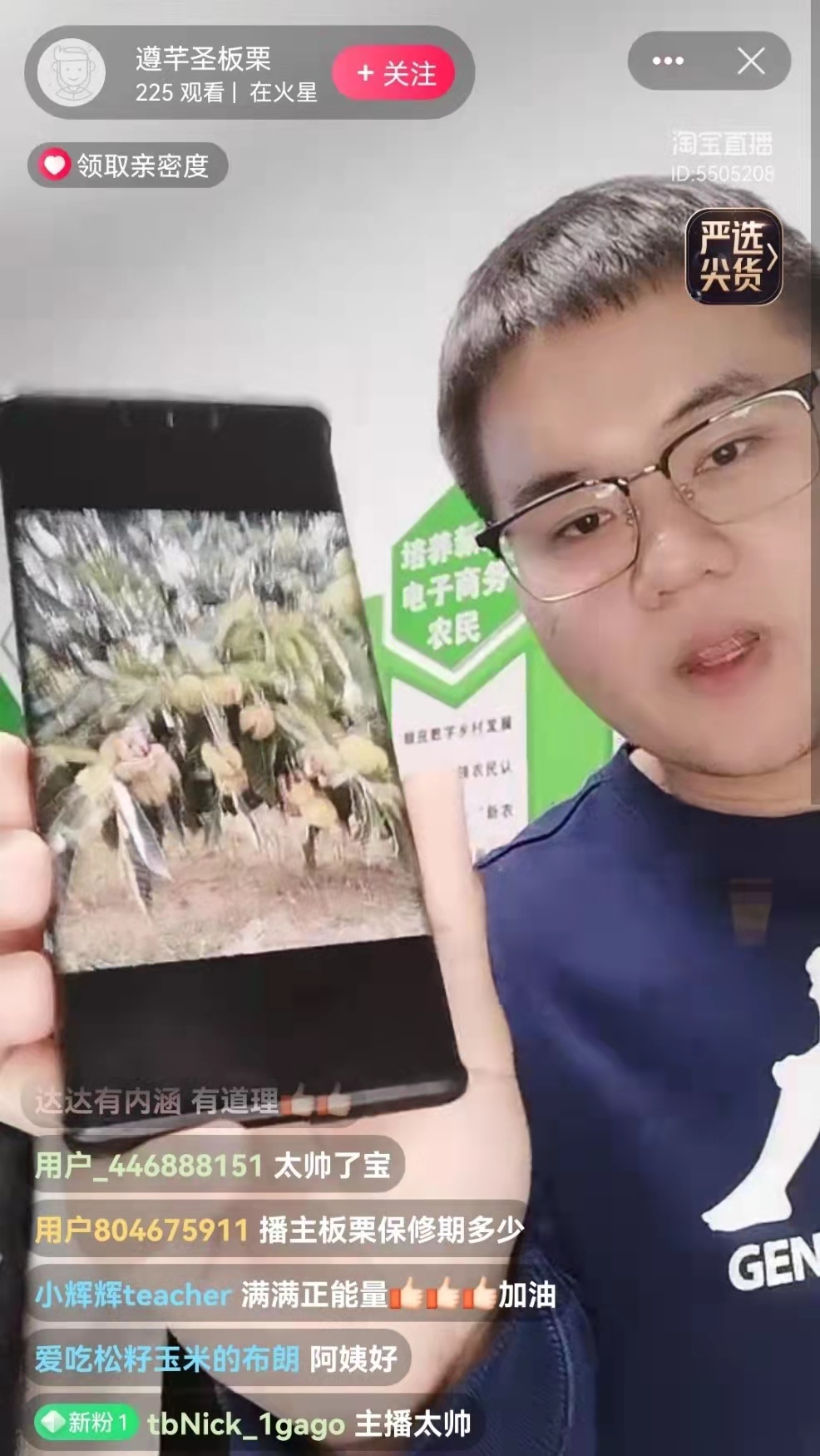 作为新时代的青年,应该承担起振兴乡村的重担,助力伟大复兴中国梦的实现。以张津澎同学为主的“冬日实践小分队”与经验丰富的辅导员白广平老师共同商榷,最后选择了遵化地区的燕山板栗,通过直播带货农产品,帮助乡村振兴。期间严格把控产品质量,保证产品卫生,制定详细带货计划。