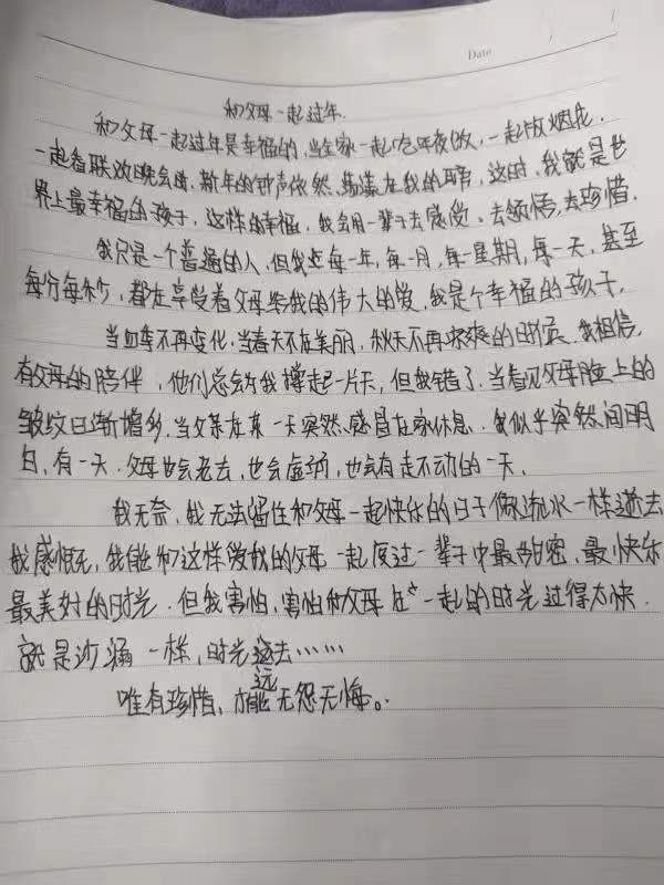 春节的情结,亲人的思念,流动的符号。同学们经历了一个又一个的新春佳节,但亲人相聚时刻的感悟相似却又唯一,每次都是不一样的解读,换来更加深刻的理解。