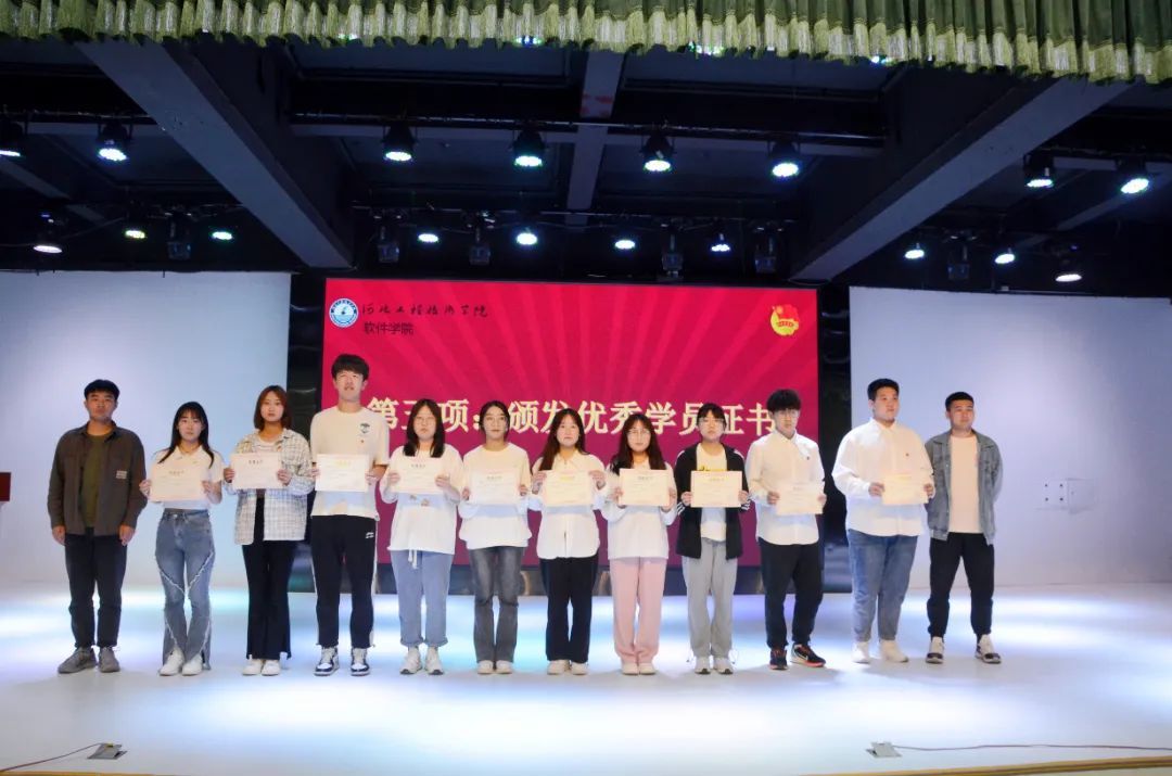 由软件公司团总支员工副书记李龙、组织委员张淋波为优秀结业学员颁发优秀学员证书。这些优秀学员们用行动证明了坚持跟党走中国特色社会主义的理想信念,即使路途荆棘,最终都会收获成长。