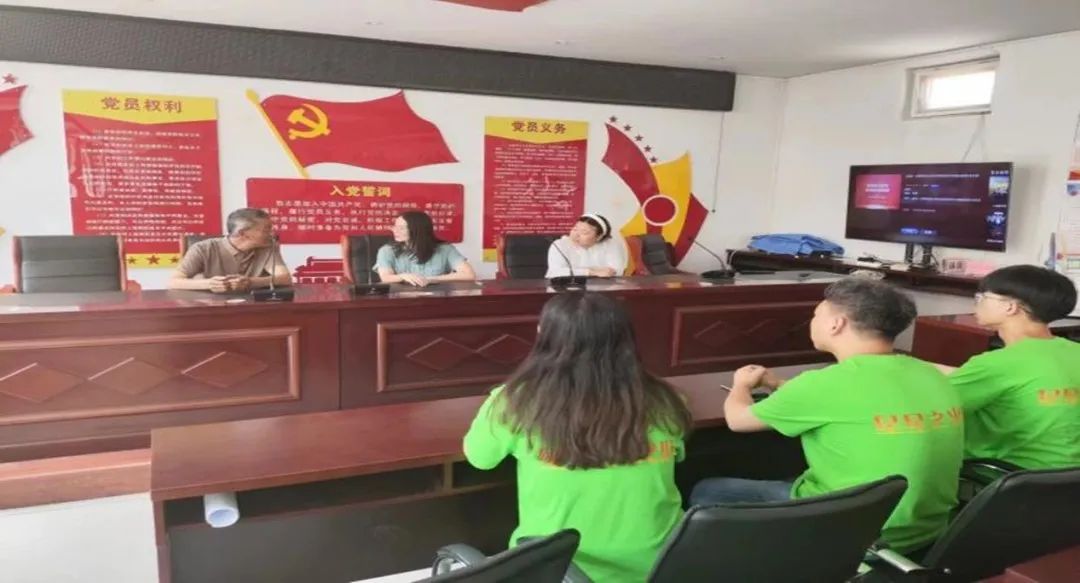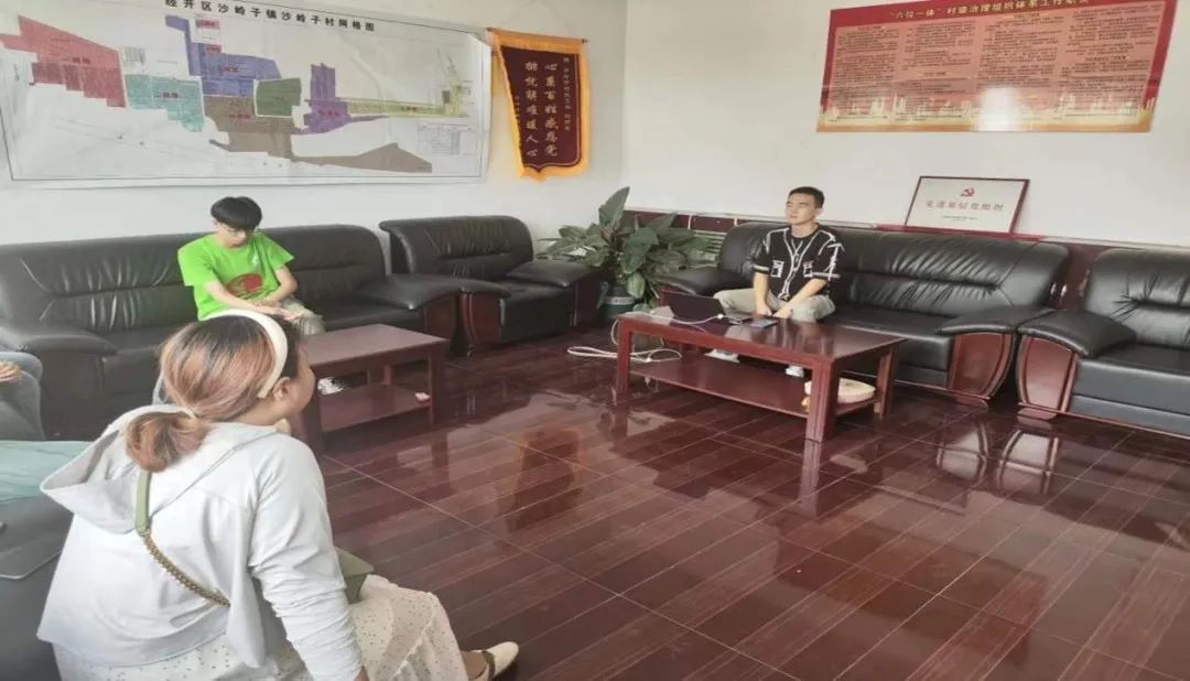 暑期社会实践团队在服务大厅与蒋生同志简单交谈后,在蒋生同志的带领下前往沙岭子村村委会会议室。