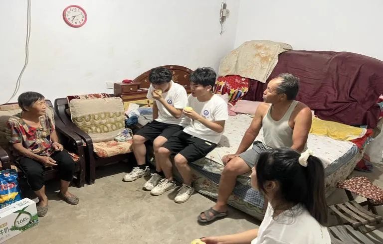 采访当天,我们为老人准备了一些生活所需的物品。茹奶奶和赵爷爷早早的就在门外等候,还热情的为我们准备了他们自己种的桃子。进入家里后,首先映入眼帘的是较为简陋的房屋,屋内的生活设施也极为简单,几部陈旧的家具最为显眼。爷爷奶奶从我们手中接过物品后,他们脸上的笑容与质朴的感谢话语让人感受到彼此之间真情与温暖的流露。