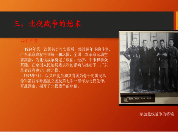 网络空间安全二班的王庆森同学重点介绍了1916年袁世凯死后,北洋军阀分裂为直、皖两系,奉系军阀和其他地方军阀也相继而成。各军阀为争夺地盘,逢年混战,民不聊生。打倒北洋军阀,结束封建军阀的黑暗统治,已成为中国人民的迫切要求。孙中山先后组织北伐,均未如愿。1926年1月,国民党第二次全国代表大会提出打倒帝国主义、打倒军阀,统一全国的纲领。于6月5日,国民党中央执行委员会临时全体会议通过迅速出师北伐案。