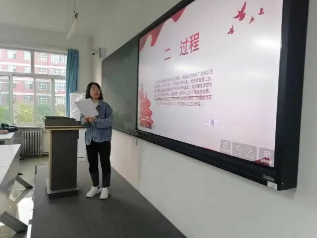 软件工程4班的杨晓瞳同学讲到如何有计划的进行社会主义建设:修建武汉长江大桥、宝成铁路、鹰厦铁路等道路工程将各个地区串联在一起,打破地区壁垒,实现互通互达,以便完成资源和人才的运输;鞍山钢铁公司的无缝钢管厂、长春第一汽车厂、沈阳的飞机制造厂制造和沈阳第一机床厂这四厂为社会主义建设添砖加瓦。软件工程5班的张东月同学讲到“五年计划”是中国国民经济计划的一部分,主要是对全国重大建设项目、生产力分布和国民经济重要比例关系等作出规划,为国民经济发展远景规定目标和方向。新中国第一个五年计划“一五”计划,是指我国从1953年到1957年发展国民经济的计划。它是在党中央的直接领导下,由周恩来、陈云同志主持制定的。第一个五年计划的实现,掀起了工业化建设的高潮,开始改变了中国经济文化极其落后的面貌,为中国国民经济以较高的速度发展打下了一个良好的基础,充分体现了中国社会主义制度的优越性。