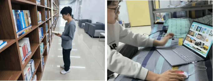 几位同学在演讲前做了充足准备,在阅览室查阅相关资料,站在讲台上侃侃而谈,为同学们生动讲解全面取消农业税这件事。
