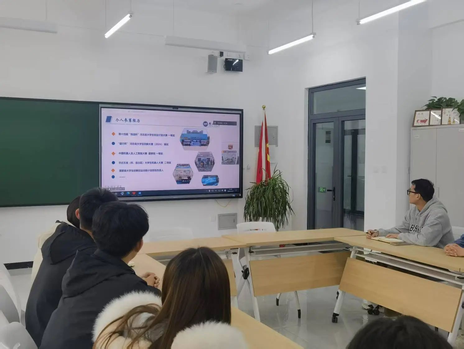 两支部代表分别介绍了各自公司在学风建设以及科技创新活动方面的基本情况。随后燕山大学信息科学与工程公司的王征宇同学作为优秀参赛代表,分享了自己宝贵的参赛经验。王征宇同学所在团队在过往 “挑战杯” 赛事中成绩斐然,王征宇同学谈到,选题至关重要,要紧密结合社会重大课题及现实问题,从国家重大需求出发,以此为切入点,使得项目具有高度的现实意义和应用价值。在项目策划阶段,一定要制定详细且合理的计划,还特别强调了团队组建的关键作用,一个优秀的团队需要不同专业背景的成员,大家各有所长,优势互补,才能全方位推动项目前进。