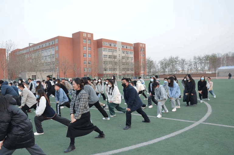 同学们按行列站好队,开始准备活动,学习太极拳二十四式中前三式——起势,左右野马分鬃,白鹤亮翅。在李虎飞老师细心地教导下,大家的动作由刚开始的僵硬不协调越发的流畅行云流水。期间,老师积极与同学们互动,手把手教太极拳二十四式中的云手,欢声笑语飘荡上空,在其乐融融的氛围中,时间悄然而过。最后大家合影,纪念这一次的太极拳活动。