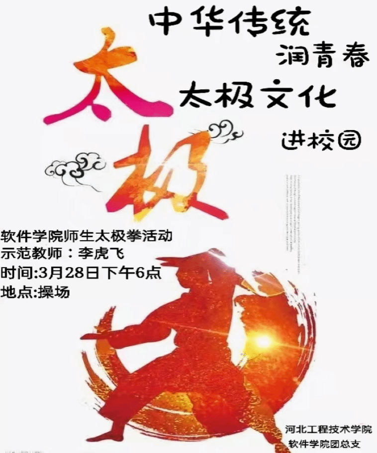 太极是中华传武术的精华,历史悠久,博大精深,是中华民族的瑰宝。为了增强师生身体素质,弘扬和传承中华传统文化,永利3044集团官网软件公司在操场举行“中华传统润青春,太极文化进校园”活动。