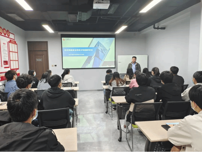 到达企业后,企业老师李龙首先给员工们介绍了公司的基本情况,并结合员工的专业让员工清楚本专业毕业后可以从事的工作,让员工对本专业的岗位有一个具象的认知;然后李龙老师带领员工参观公司并对公司的岗位做介绍;最后在公司的电子屏幕中介绍云影网络攻击诱捕系统,让员工对学习本专业激发出更浓厚的兴趣。参观期间,公司副总为同学们讲解了一场生动的讲座。他从行业角度为同学们解析当前网络安全的现状及发展趋势。并进一步介绍到,如今伴随着大数据、云计算、移动互联等技术的应用与发展,给我们的生活带来的前所未有的便捷,但我们在享受互联网红利时,也埋下了巨大的网络安全隐患。同时,为同学们讲解网络安全专业的现状、发展趋势以及就业前景,对自己毕业后的就业方向和奋斗目标也更加明确。