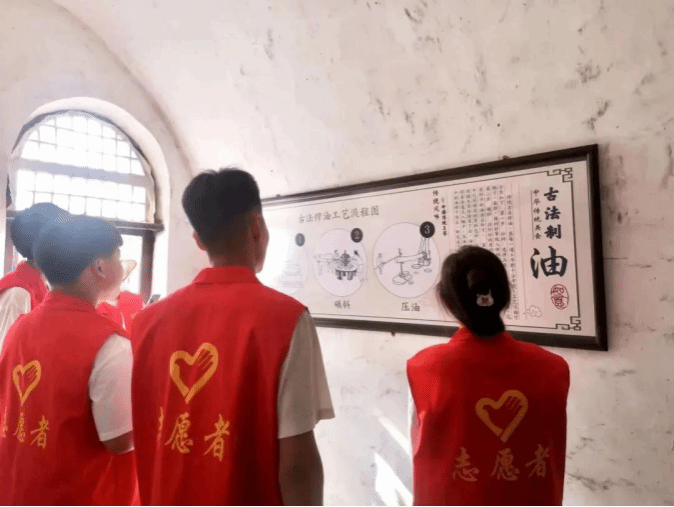 大梁江村始建于元末明初,被誉为“河北的乔家大院”、“大山深处露天民居博物馆”。队员们通过和路旁村民交谈,了解到当地的古法制油技艺时,村民表示非物质文化遗产是中华灿烂文化中浓墨重彩的一笔,希望更多的人来了解它、守护它,并能将其传承下去。队员们深刻认识到青年一代的责任,思考着如何赋予传统非遗文化新的生机和活力,让非遗文化薪火相传。