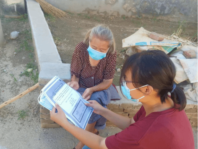 队长韩玉婷在组织队员的同时,也积极地完成自己的工作。在街上巡逻宣传、在村进出口执勤,在门口对进出的行人进行排查。同时,在做好安全防护前提下,协助村书记开展值班登记,详细填写台账,记录来往人员的信息。指导村民使用“冀石通”来进行核酸检测,减轻工作人员负担。
