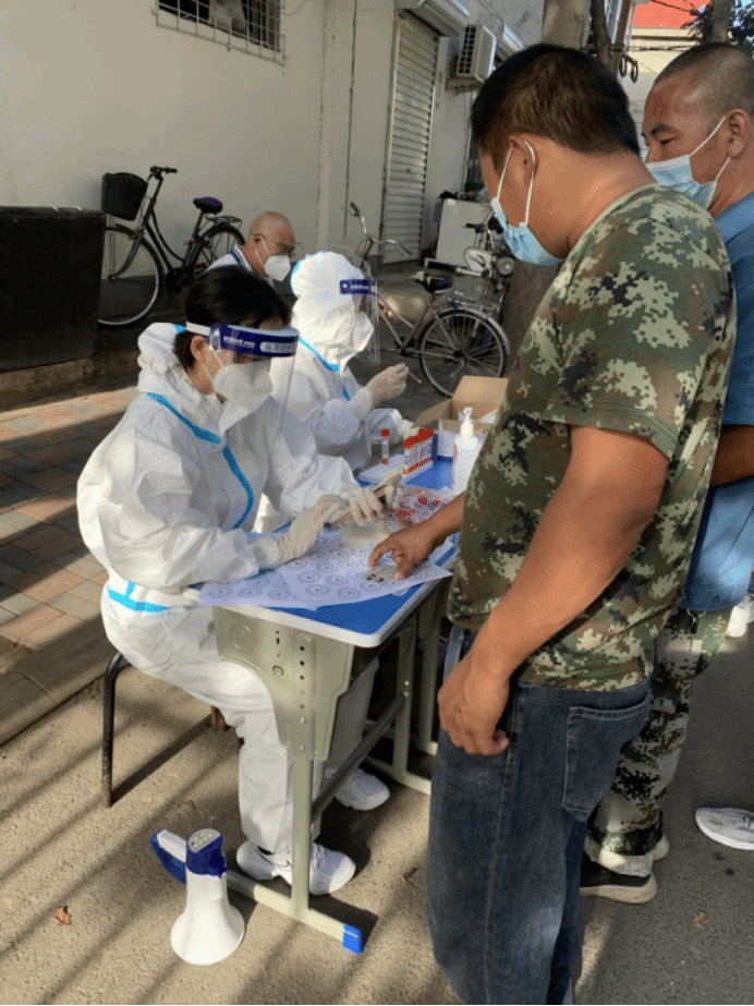 当她穿上防护服成为“大白”时,认真对核对核酸检验人员的信息,与核酸采样的医护工作者配合默契,确保不出一丝纰漏。防护服一穿就是好几个小时,期间不能吃不能喝,每次结束采集工作后脱下防护服,脸上时被口罩和面屏勒出的印子,脸上红红的,衣服被汗水打湿,但她从未想过放弃,她始终坚信这场战“疫”,终将胜利。
