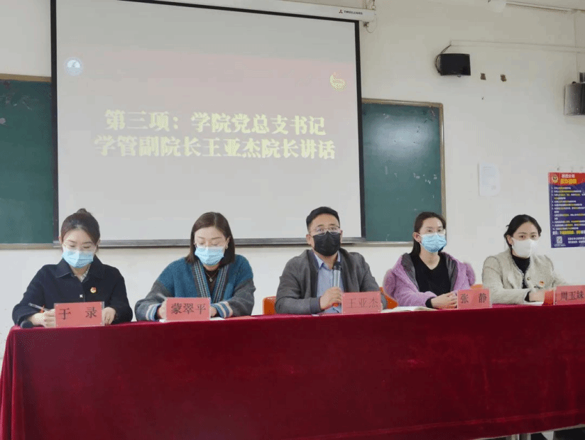 参加本次大会的领导、老师有软件公司党总支书记学管副经理王亚杰、软件公司学管办公室主任于录、软件公司团总支书记周玉妹、21级辅导员年级组组长蒙翠平、20级辅导员年级组组长张静。本次大会由于录老师主持。