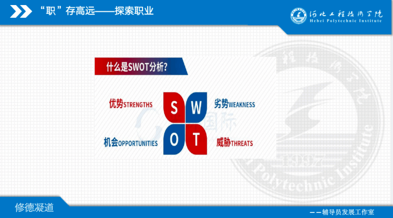 最后讲解了如何用5W1H和SWOT分析法制定大学规划,让员工明白制定规划的最终环节是去做,只有把计划付诸于实践,才能离目标越来越近。