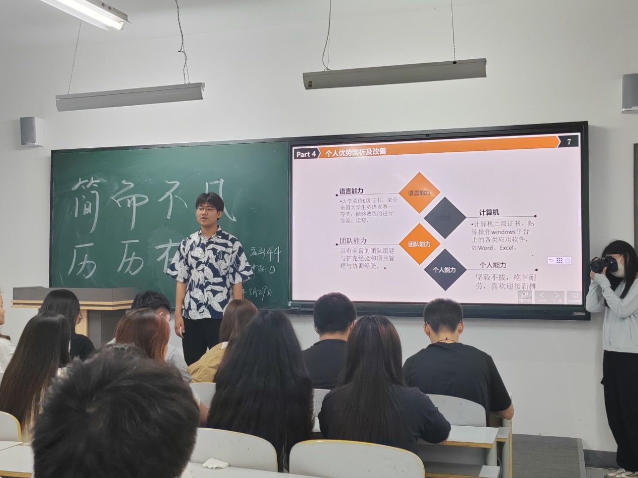 从一定程度上来说,求职简历是开启就业之门的金钥匙,是应聘单位的“见面礼”。比赛经过层层选拔,共有8名选手进入决赛。各位选手在舞台上充分展现自我,以自信的姿态努力介绍自己,慷慨激昂的展示自己专业能力、求职意向等内容。所制作的简历也各具特色,展示自己在大学时期的各种实践经历以及获得的各项荣誉。选手在大赛现场中表现各有千秋,竞争激烈。