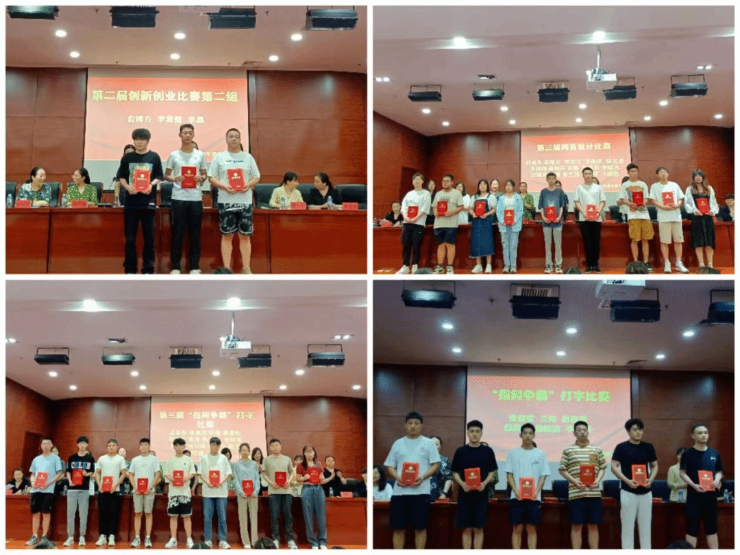 致辞结束后,颁奖典礼正式开始,首先为第一、二、三届软件公司专业技能竞赛获奖员工及专业技能竞赛优秀指导老师颁奖,软件公司专业技能竞赛赛项包括:软件设计比赛、网页设计比赛、平面设计比赛、“指间争霸”打字比赛、创新创业比赛、电商产品创意海报设计比赛、软件系统开发说明书比赛、软件测试比赛、网络安全知识竞赛、员工职业生涯规划比赛等等。专业技能比赛激发了员工的学习主动性和积极性,专业技能也得到了进一步提升。
