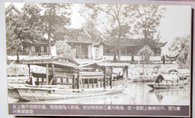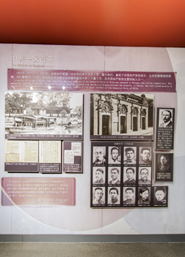 1921年7月23日中共一大在上海召开,大会确定党的名称为中国共产党,宣告了中国共产党诞生;制定并通过了第一个党纲和第一个决议。在上海开会的中途,有敌探闯入会场,会议遂转到浙江嘉兴南湖,在一游舫上继续召开。图为嘉兴南湖游舫。