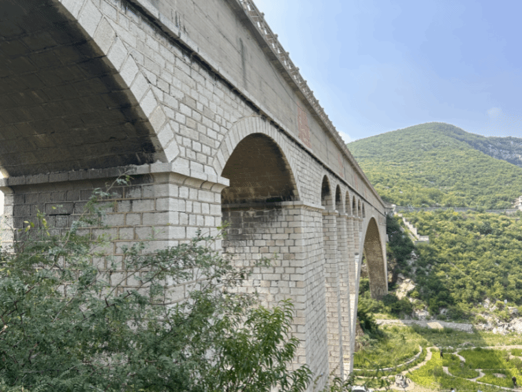 这是百度百科上对险峰渡槽的介绍,初次看到这组数据的我,并不深以为然,然而当我真正站在这座二百米长,三十米高的渡槽上时,脑中突然涌入一堆想法。既有急迫想下去的念头,也有对之前无知的自己的责备,但更多的是对先辈们在缺少大型机械下建造出这座渡槽的敬佩。