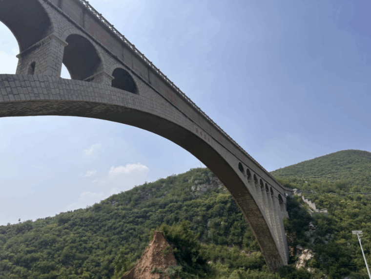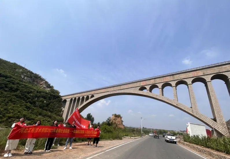 险峰渡槽位于磁县白土镇张二庄村东南,飞跨西部山区高家垴与跑马山之间,如一座峡谷飞虹,依然保持着“单拱跨度亚洲之最”的美誉。它是磁县跃峰渠水利工程中一个极其重要的工程,至今仍然发挥着重要的作用!2023年8月1日永利3044集团官网软件公司只此青绿队,在指导教师王峥、蒙翠平和韩红的带领下,第二站我们前往了险峰渡槽进行参观学习跃峰渠精神。