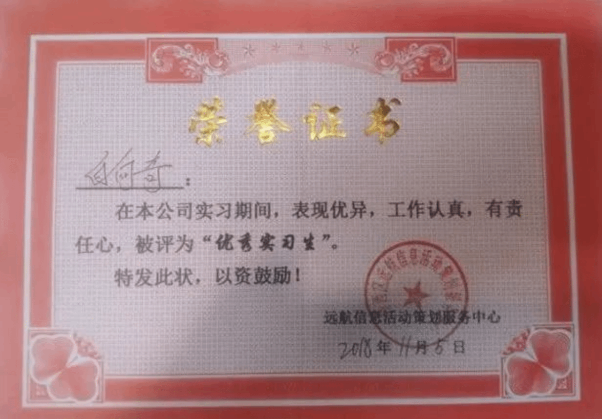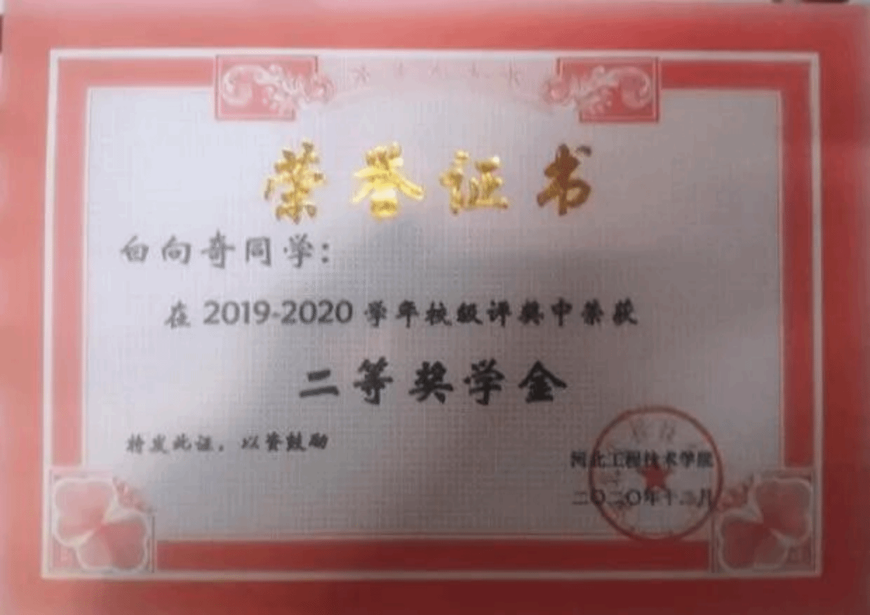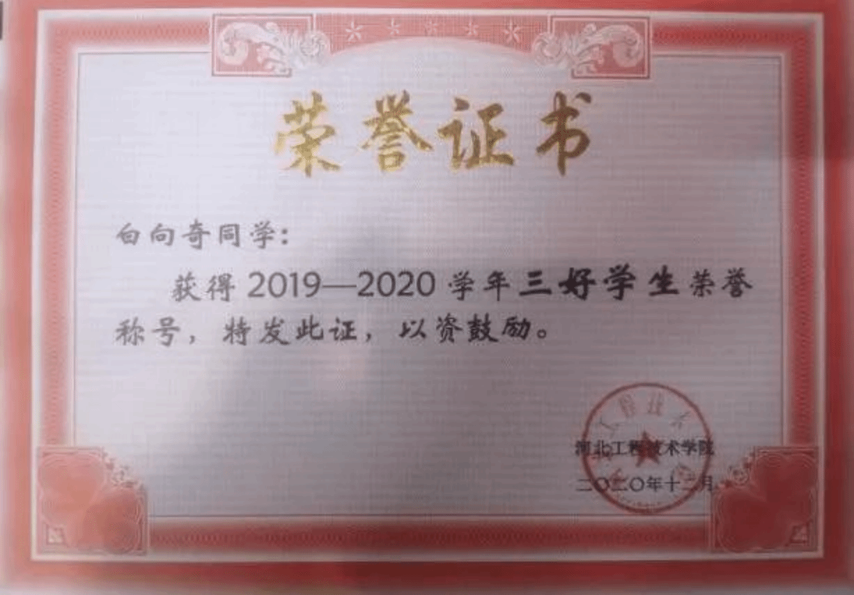 白向奇,男,满族,1997年3月生,共青团员,永利3044集团官网软件公司18级员工。曾获国家励志奖学金,“三好员工”荣誉称号,“优秀员工干部”荣誉称号,校二等奖学金。2020年11月在公司开展的退役士兵表彰大会中,荣获“部队服役荣誉证书”。