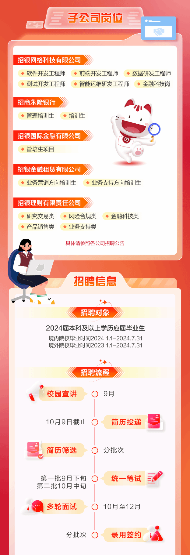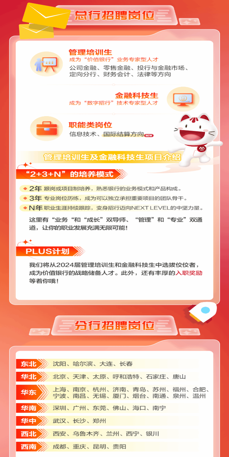 招商银行总行、分行、信用卡中心及子公司2024校园招聘虚位以待,邀您同行,梦想靠岸!