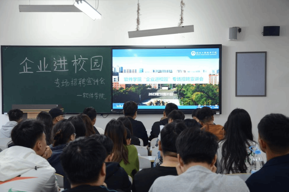 会议主要分为三大部分,第一项由企业负责人杨程吉通过PPT展示的方式,向前来参会的2024届软件公司的毕业生介绍了企业规模、企业岗位需求,薪资待遇等方面的情况,希望能通过本次的宣讲能够吸引到公司更多的优秀人才为公司注入新鲜血液,也为各位同学提供施展才能,锻炼自我的机会。第二项现场互动答疑,2024届毕业生积极与各企业进行交流讨论,进一步了解公司的发展前景、岗位需求、住宿环境等问题,使同学们对各公司有了更加直观和深入的了解。最后,同学们进行简历的投递,一对一答疑,为即将毕业的毕业生提供了更加广阔的就业平台,希望同学们可以把握此次机会,充分发挥自己的才干,进入自己心仪的企业,就业于理想的岗位。