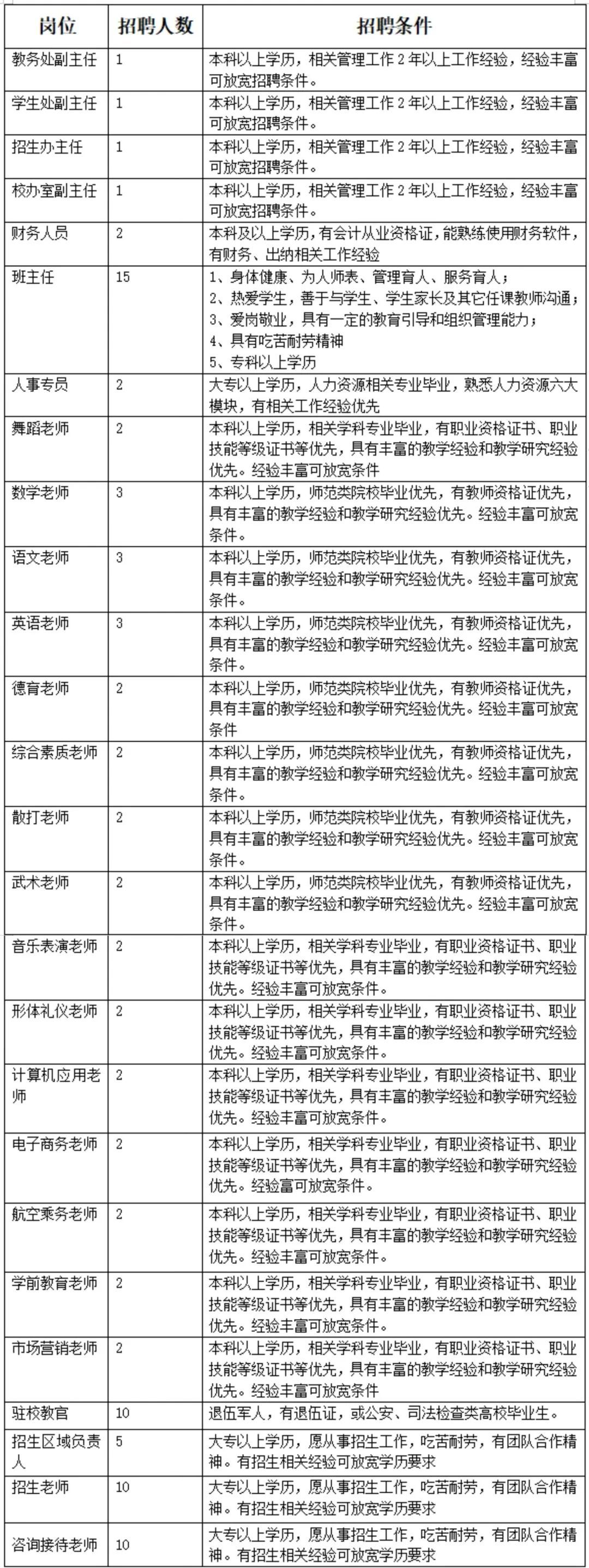 公司秉承“治学、诚信、革正、高远”的教学理念,坚持以“升学+就业”为导向的教学模式,把培养具有坚定信念、吃苦耐劳以及精通专业技能的职业人才为目标,为社会培养了一批批优秀毕业生,升学和就业率始终居同类公司前茅,得到各级教育部门及社会各界的广泛认可,与莘莘学子一同共筑蓝天。