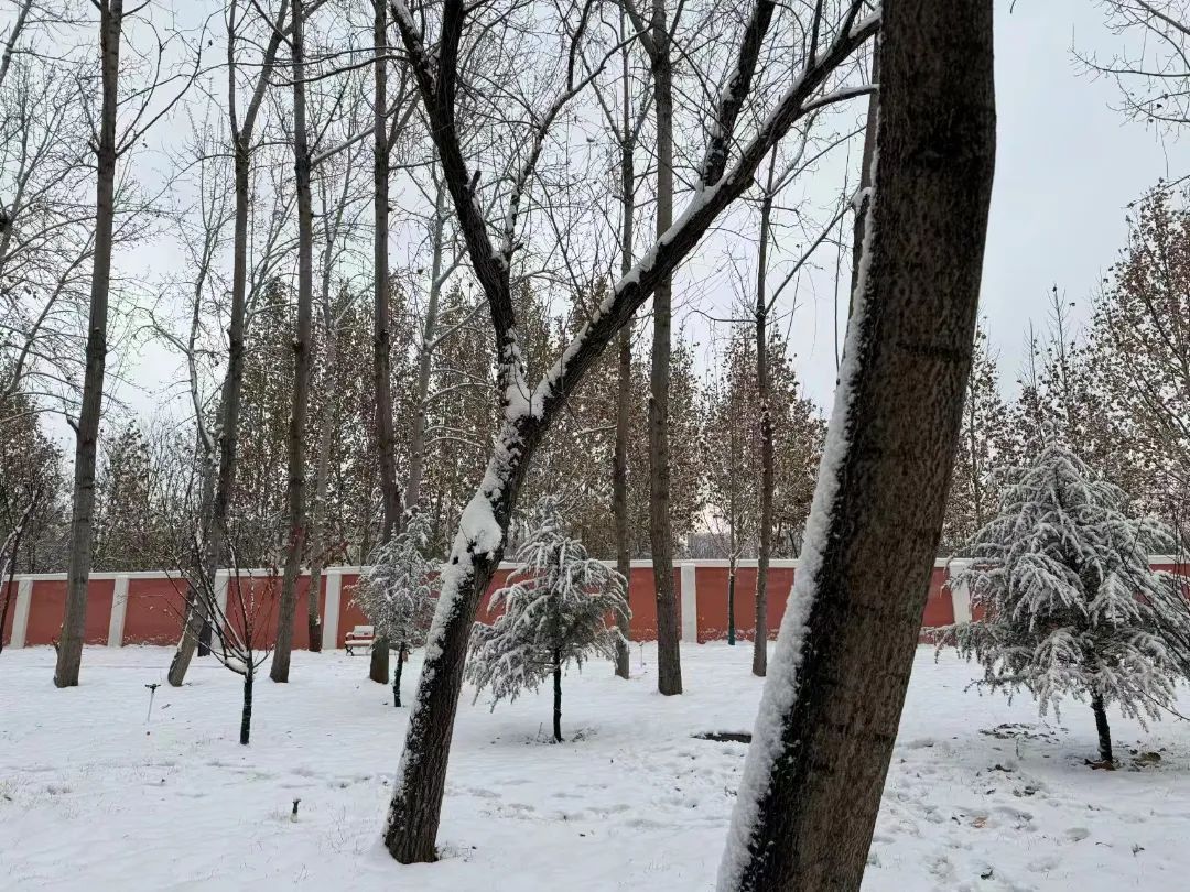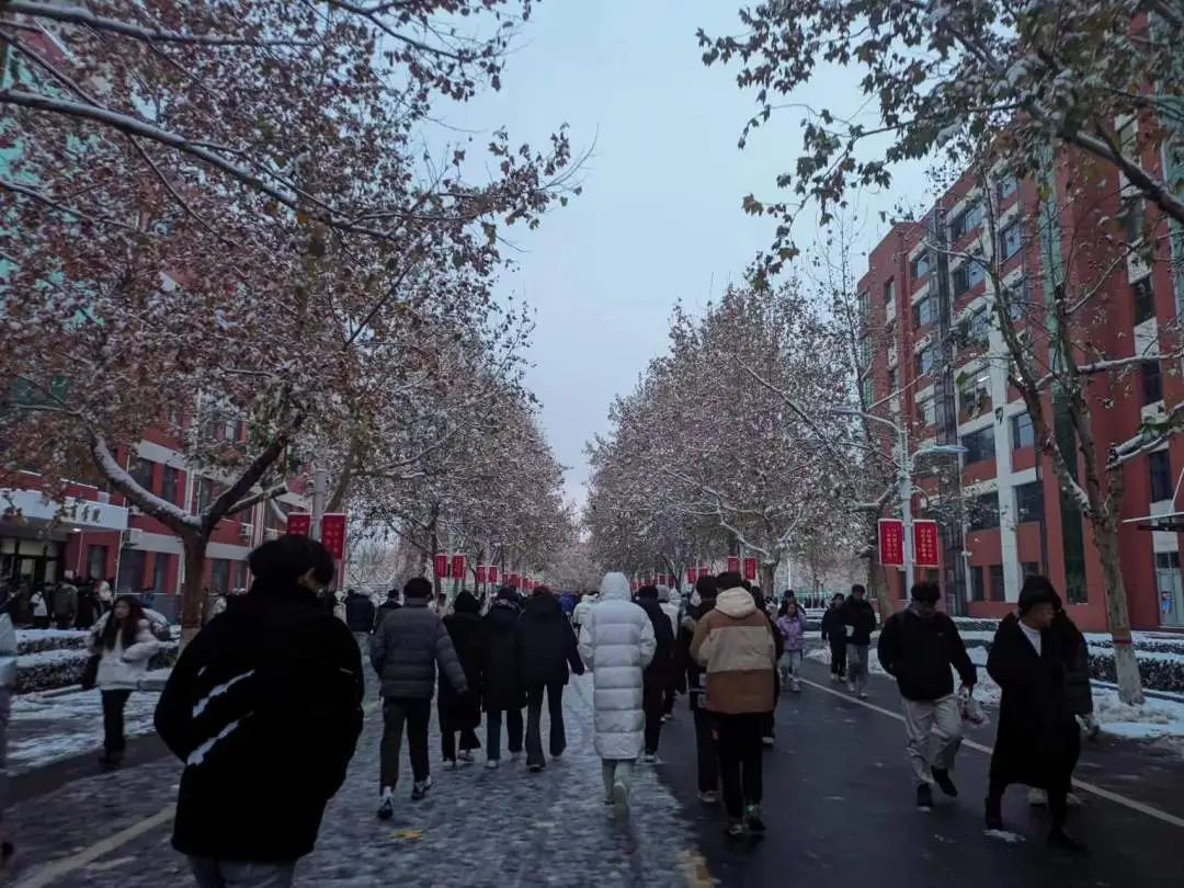 “冬天,校园里的树木披上了银白的盛装,显得更加挺拔高大。寒冷的空气里,我们携手共进,共同度过这个美好的季节。让我们珍惜每一个冬日,感受校园里的温暖与美好。”