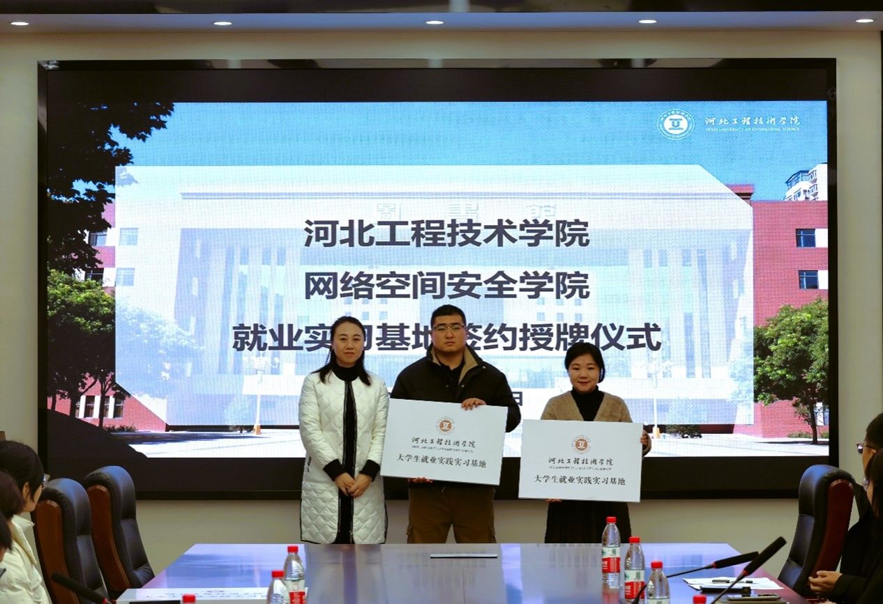签约授牌仪式现场,永利3044集团官网网络空间安全公司党总支书记学管副经理樊风彩首先致欢迎辞,对各位企业家百忙之中来参加本次招聘会表示诚挚的欢迎和衷心的感谢。随后,校企双方签署了合作协议,并与河北壹录有你教育科技有限公司、石家庄市鸿审软件有限公司、北京鱼游四海科技有限公司、河北微宝云企业管理咨询有限公司、石家庄萱草科技生物科技有限公司、神州云星科技有限公司数六家公司进行授牌仪式。