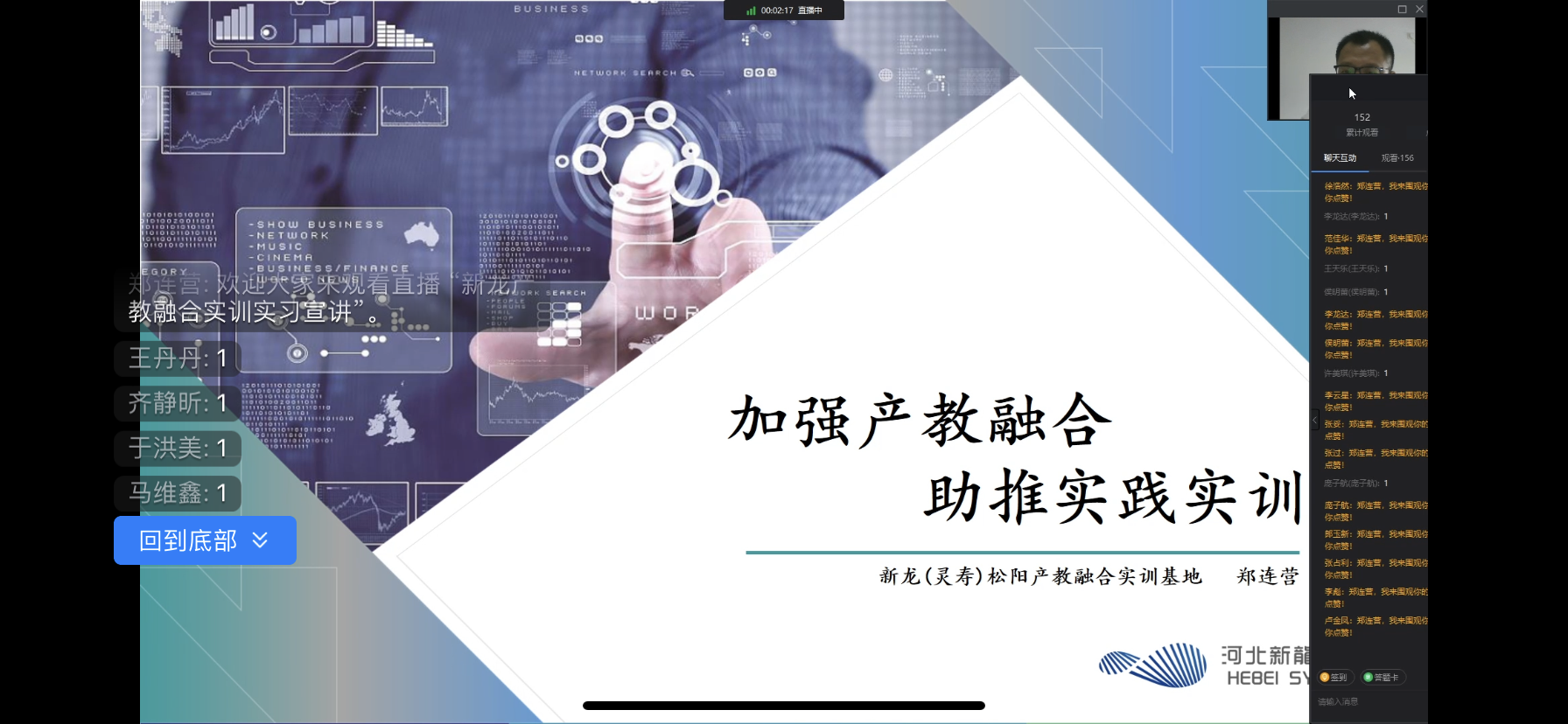 2022年7月22日,软件公司特色班针对设计方向的员工组织了一场线上新龙产教融合实训实习宣讲活动。郑连营老师对新龙产教融合基地及实习方向进行了介绍。