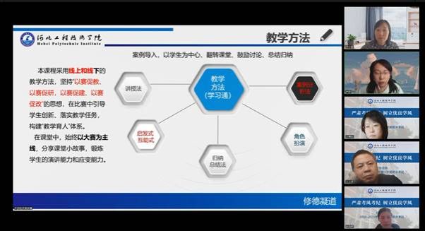 为了更好地落实立德树人根本任务,落实应用型培养目标,提升教师的教学水平和推进课堂教学革新,促进教师潜心教书育人,12月9日14:00-17:00,通识教研室、创业教研室开展线上教学技能研讨活动。教学研讨活动分三部分进行: