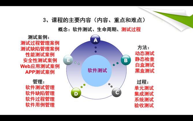 张波老师还建议大家要给员工上序言课。以《软件设计与体系结构》、《软件测试技术应用》课程举例,用思维导图、拓扑图等方式把整个课程的课程概述、教学设计、教学方法、创新特色讲清楚,并对员工的教学效果进行要求。
