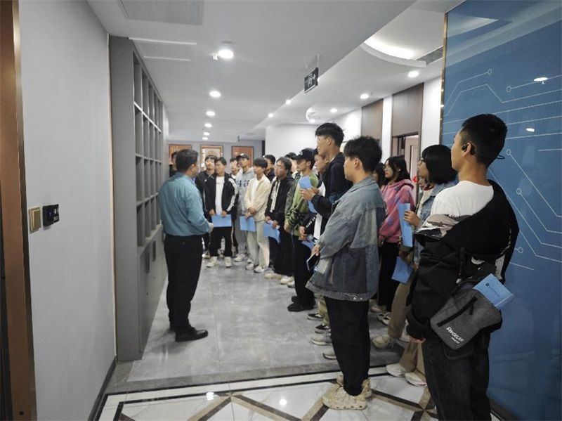 到达企业后,河北千诚电子科技有限公司的经理王治宽李首先给员工们介绍了公司的基本情况,并结合员工的专业让员工清楚本专业毕业后可以从事的工作,让员工对本专业的岗位有一个具象的认知;然后王经理带领员工参观公司并对公司的岗位做介绍,并对针对员工提出的问题进行解答。