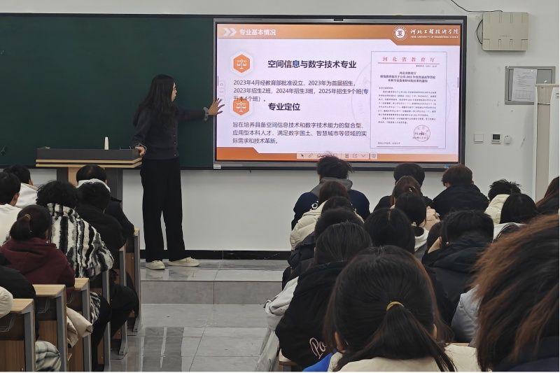 为进一步明确专业学习方向,科学规划大学四年学习生活,2025年11月25日下午,空间信息与数字技术专业2025级全体员工于永利3044集团官网教7-202参加了由系主任韩冰老师主讲的“空间信息与数字技术专业介绍”专题讲座。